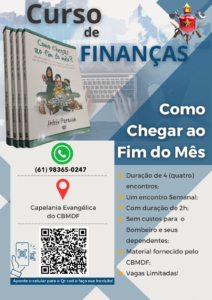 A Capelania Evangélica do Corpo de Bombeiros Militar do Distrito Federal (CBMDF), por meio da DISAU/CEABM, realizará no primeiro semestre de 2026 o curso de finanças “Como Chegar ao Fim do Mês”, em parceria com a Universidade da Família. A iniciativa tem como objetivo promover educação financeira e contribuir para o equilíbrio econômico e emocional dos militares e seus familiares.