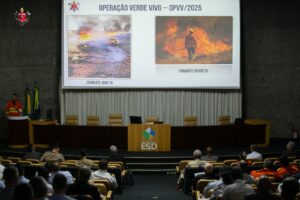 O Coronel Barcelos também detalhou a Operação Verde-Vivo, iniciativa do CBMDF que estrutura, de maneira sistêmica, o enfrentamento ao período crítico de estiagem no Distrito Federal. A operação, reconhecida pela abordagem inovadora e pela forte articulação interagências, envolve monitoramento contínuo por meios aéreos, emprego de tecnologias de detecção remota, capacitação permanente das guarnições e ampliação das ações de educação ambiental junto à população.