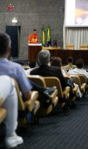 Durante sua palestra, o Comandante-Geral apresentou uma análise aprofundada sobre o emprego estratégico de aeronaves no combate aos incêndios, destacando a evolução das operações aéreas no âmbito do CBMDF, sua importância para a redução do tempo-resposta e a ampliação da capacidade de cobertura em áreas de difícil acesso. Ele ressaltou que o uso integrado de aeronaves de asa fixa e rotativa tem potencializado a eficiência das ações, permitindo maior precisão nas descargas de água, melhor coordenação com as equipes em solo e otimização dos recursos operacionais.