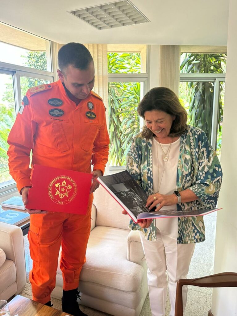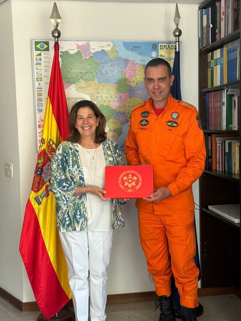 No dia 8 de outubro, o Comandante-Geral do Corpo de Bombeiros Militar do Distrito Federal (CBMDF), Coronel Moisés Alves Barcelos, realizou uma reunião na Embaixada da Espanha com a Embaixadora, Excelentíssima Sra. María del Mar Fernández-Palacios Carmona.
