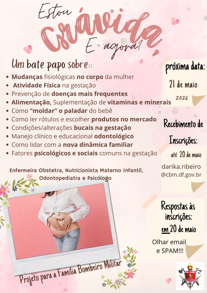 O evento é realizado na Sala de Reuniões da POMED, com frequência mensal e duração aproximada de 4h. Inscrições e maiores informações pelo email darika.ribeiro@cbm.df.gov.br.