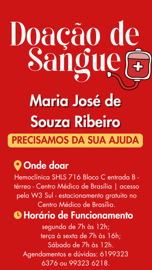 Local para doação: SHLS 716 – Bloco C, Asa Sul – Brasília/DF