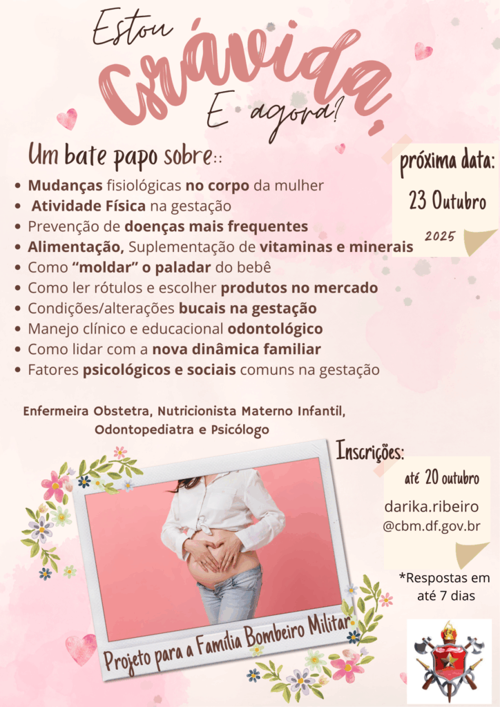 E a odontopediatria irá palestrar acerca nos cuidados odontológicos na gravidez e situações mais comuns (sangramentos gengival, entre outros…).