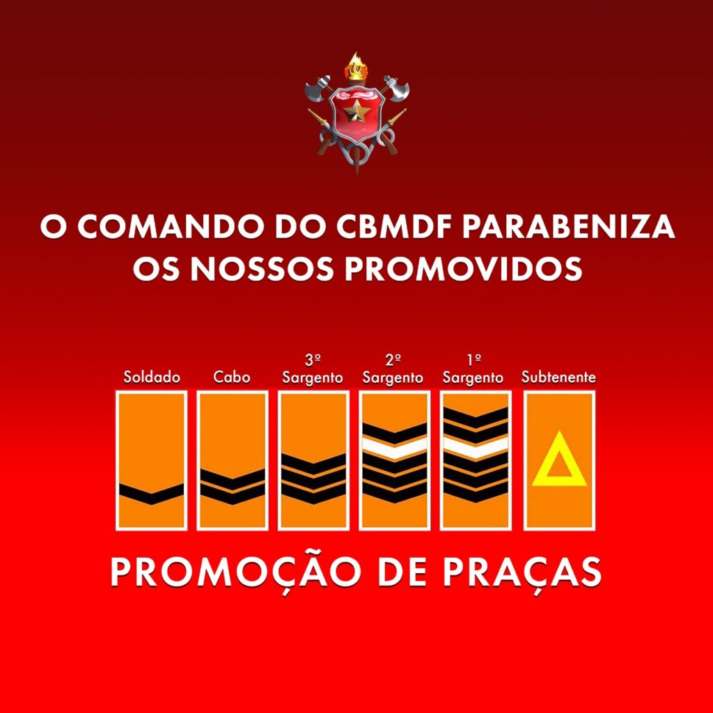 O Comando do CBMDF felicita as Praças promovidas em 30 de março de 2026, desejando que essas novas graduações, conquistados com grande dedicação e sacrifício pessoal, impulsionem ainda mais o compromisso com um serviço exemplar em prol da população do Distrito Federal.