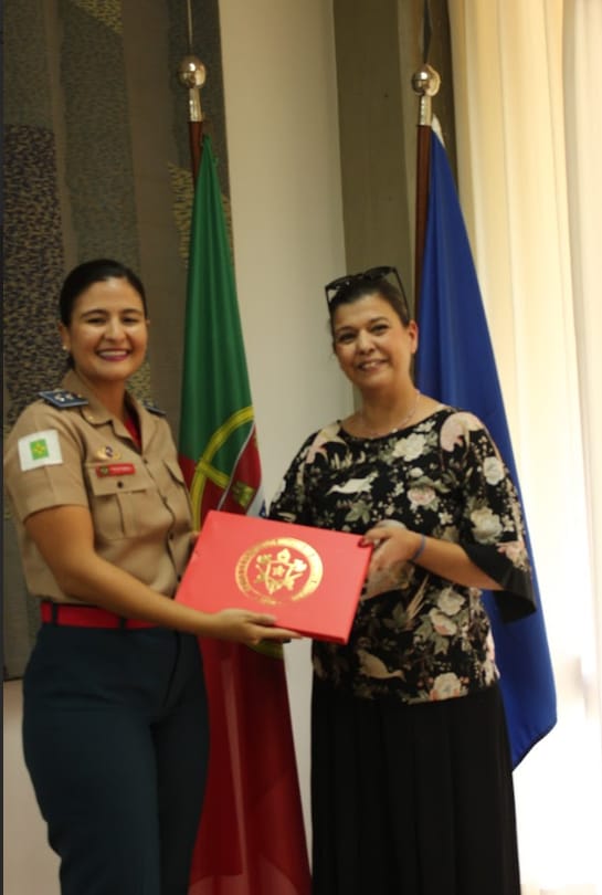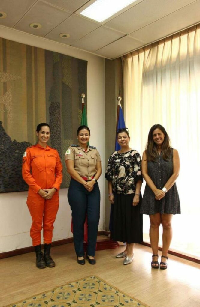 Representando a ASCOP, estiveram presentes a 1ª Tenente Tassiana Araújo, Respondendo pela Chefia da ASCOP, a 3ª Sargento Bárbara Teixeira, Assessora Internacional, e Anna Ramalho, Assistente de Relações Internacionais.